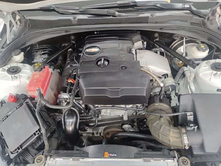 接下来打开机盖检测发动机舱,这款凯迪拉克ATSL搭载一台四缸涡轮增压发动机,最大马力279,最大扭矩400,变速箱是8档手自一体,官方测试百公里加速6.2秒,追高铁肯定是夸大其词了,但是秒掉路上敢和你呛声的鬼火少年还是没什么压力的啦。