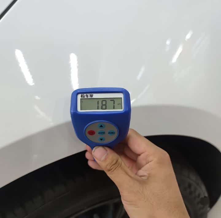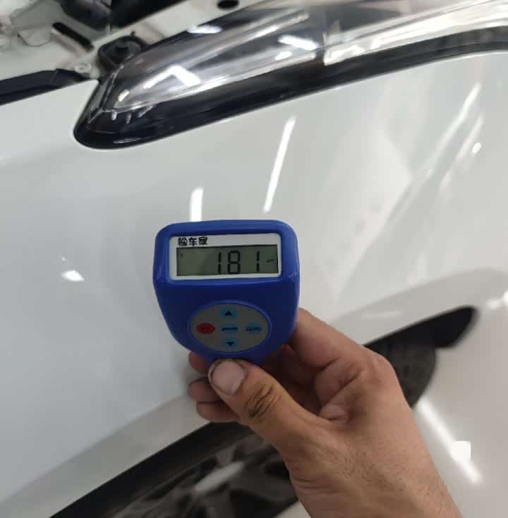 左前翼子板的情况也好不到哪去,是有喷漆的情况,但检测下来没有钣金。