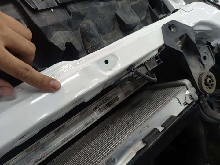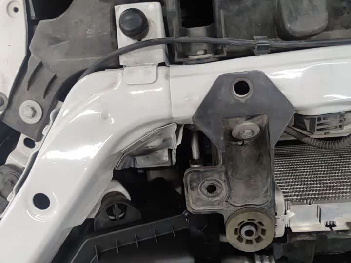 前防撞梁有拆卸,不过好在前纵梁没有变形修复的情况,仅仅只是水箱框架变形的话,倒也不是什么大问题。