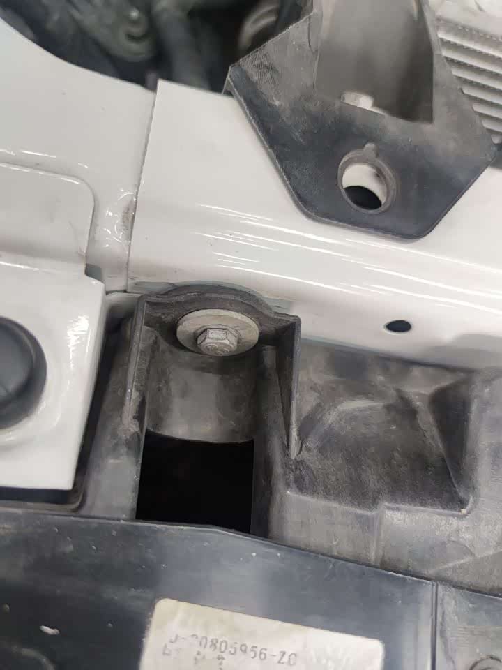 水箱固定螺丝也存在拆卸,这个年份的车,水箱一般不会拆卸的,而且有个细节,就是水箱固定支架有开裂的情况。