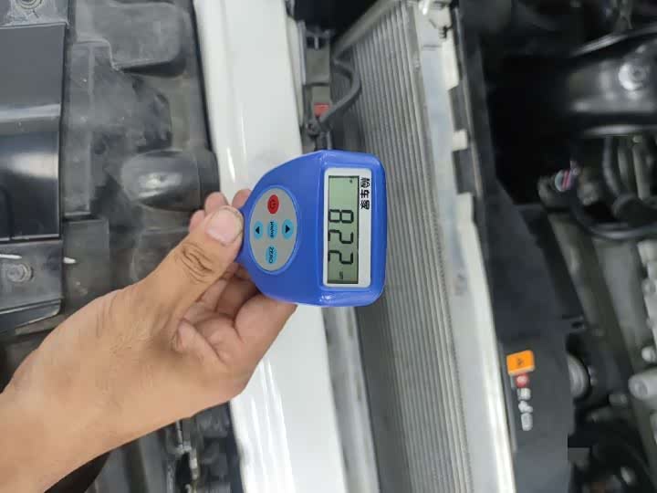 用仪器测量一下,数值直接起飞到800多微米,看来还刮过腻子,由于凯迪拉克的水箱框架是焊接在一起的,不可拆卸更换,所以对车辆价值肯定有影响,客户当然也看得非常清楚,脸色变幻莫测,但也没说什么,示意阿耀我继续检测。