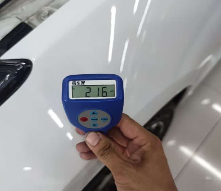 由于车顶贴有黑色膜,漆面数值无法作为参考,所以先检测前盖,这个数值不对哦,毕竟之前阿耀我检测过的ATSL已经数不胜数了,漆面数值大概都清楚,表面的纹路不符合原厂纹路,而且有些地方还存在砂纸印记,妥妥的喷漆。