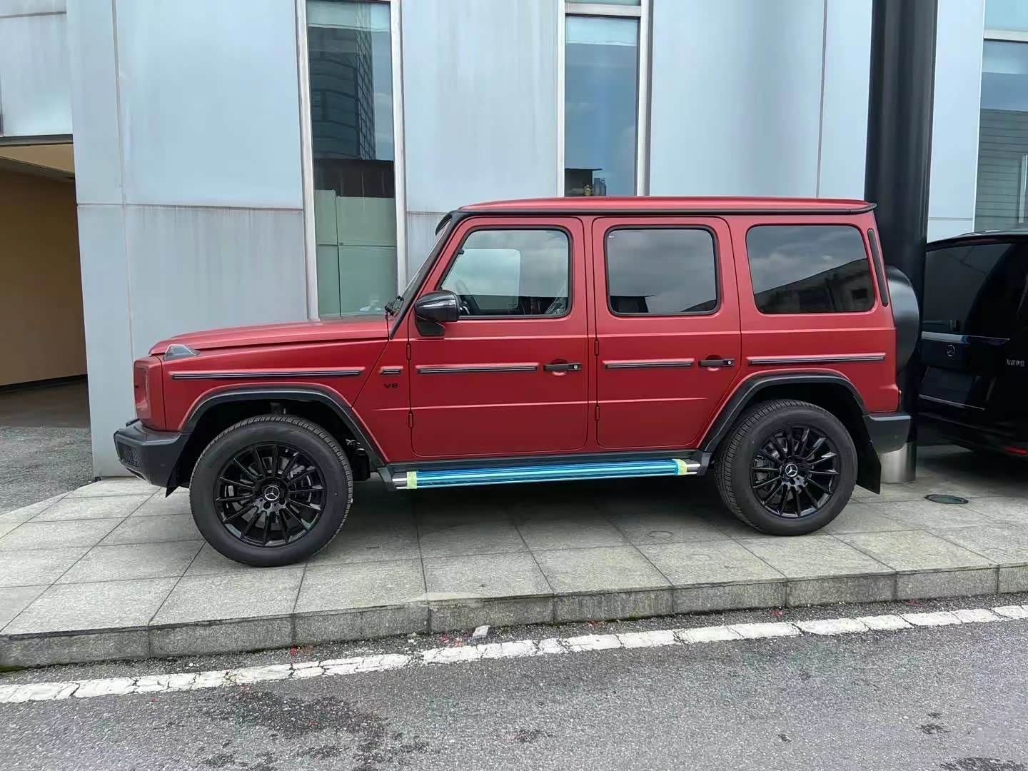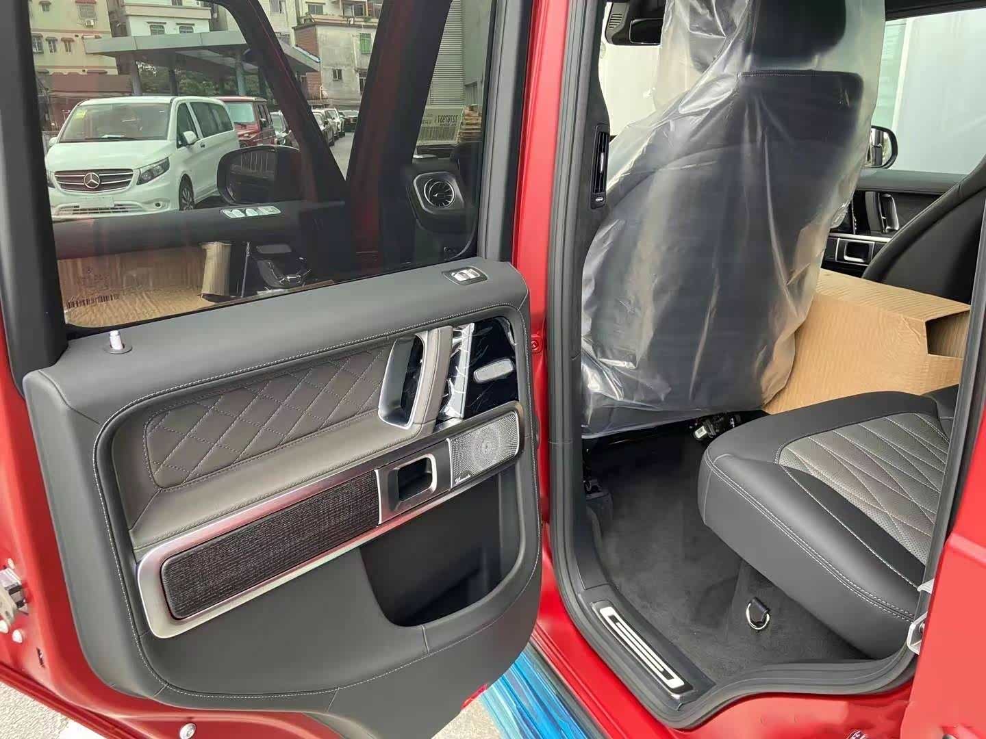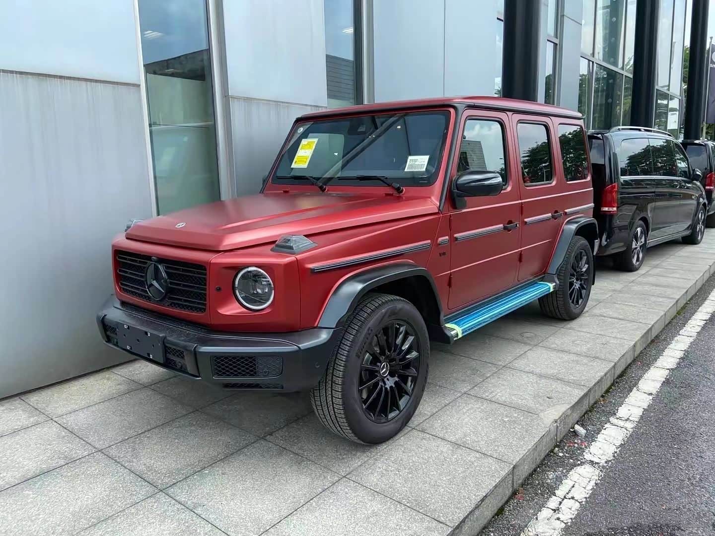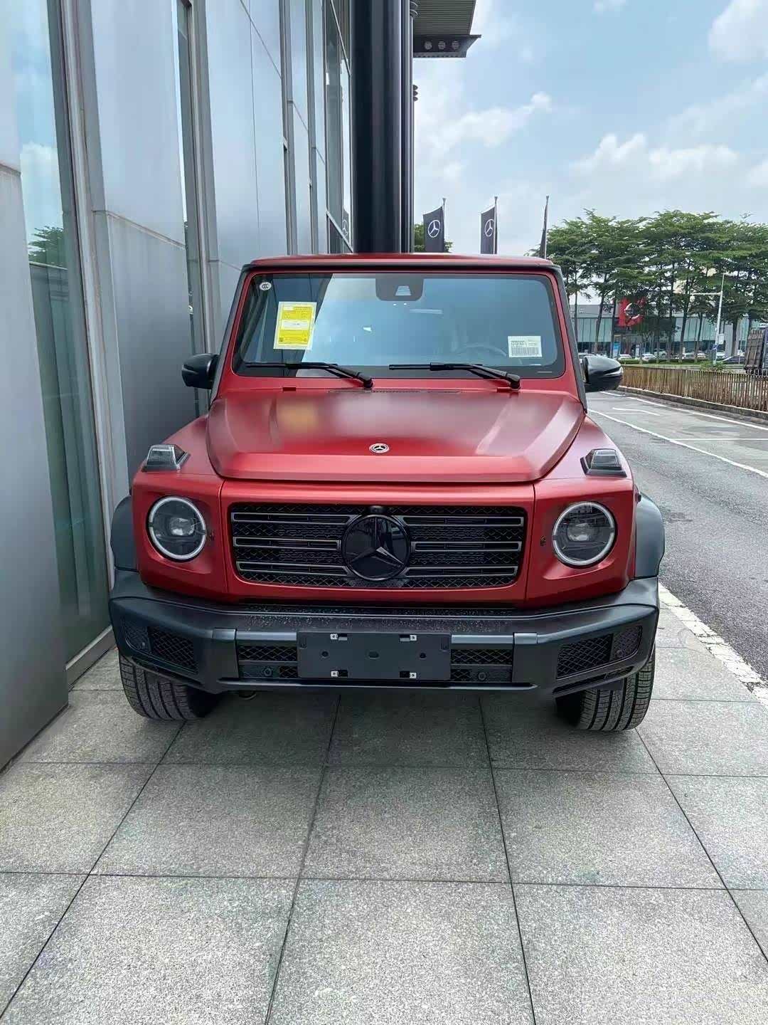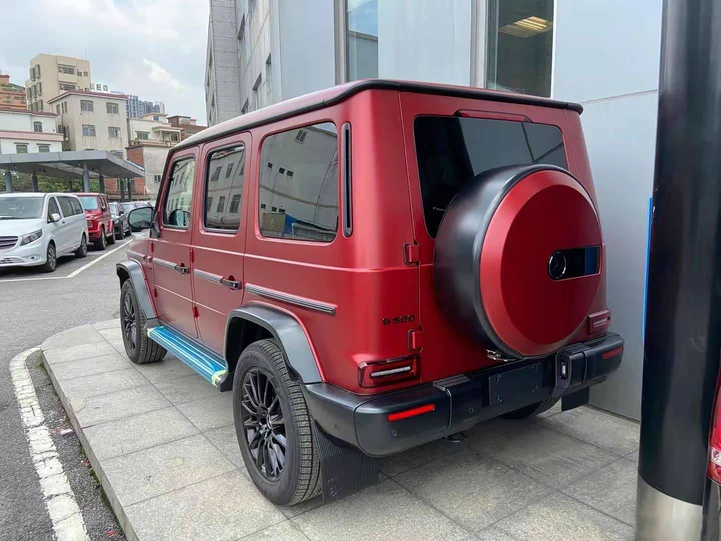 奔驰G大家应该是都比较了解的,四四方方的样子也不需要过多介绍。不过,新车采用了哑光锆石英红车漆,中网、车标、后视镜、转向灯、轮圈等都进行了黑化处理,黑红的搭配看上去十分张扬,哑光漆面也很有质感。