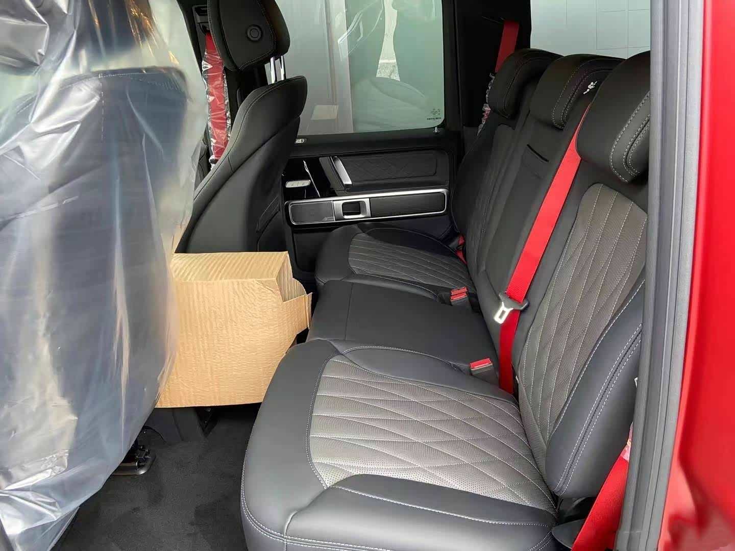 内饰的变化不大,但是可以看到副驾前方的扶手上印有“1 of 500”的字样,这就是它和普通奔驰G的差别。另外,新车的安全带也是红色的,和车漆颜色形成了统一。