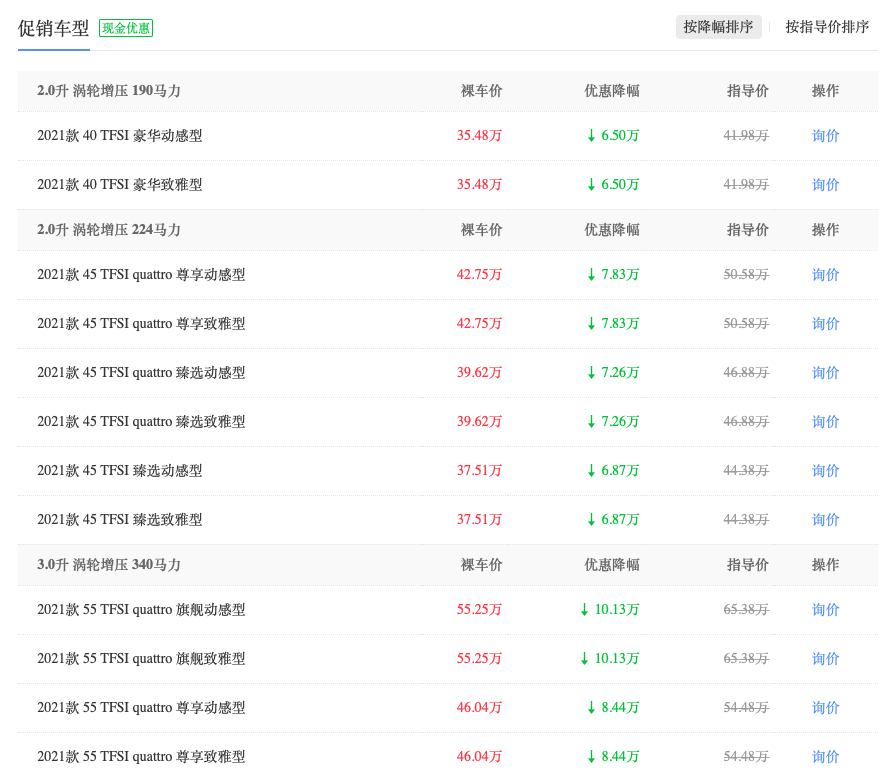 2021款奥迪A6L动力上搭载的是2.0T和3.0T两款发动机,传动系统匹配的是7挡湿式双离合变速箱,动力输出上也是十分充沛的。