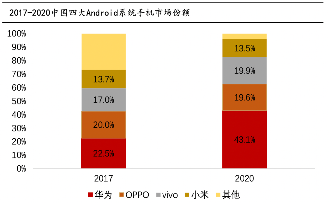 作为ICT企业,华为确实看的更远也更有能力去做长远布局。在4G引发的移动互联网浪潮中,华为便在智能手机战场取得了重大胜利,一度成为全球销量最高的手机品牌。4G网络蓬勃发展的这几年,华为手机从22.5%的中国安卓手机市场占有率,上升到了43.1%,成为妥妥的一哥。