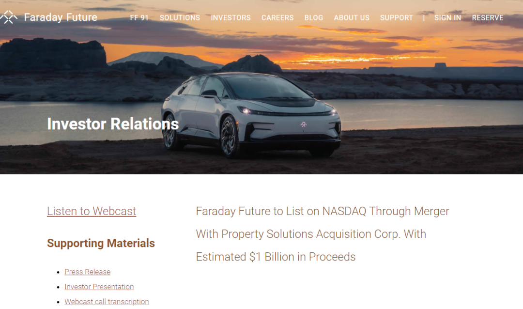 根据此前透露的信息,PASC与FF的合并协议预计于今年二季度完成交易,FF将以股票代码“FFIE”在纳斯达克上市。而FF 91将在合并后的一年内推出。