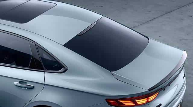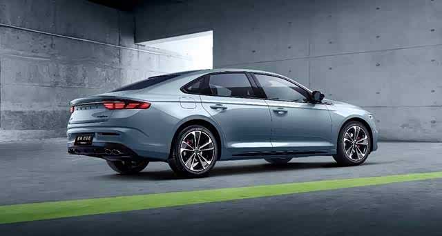 车身侧面也是延续了普通版的造型,接近4米8的车身长度看上去很修长,笔直的折角式的腰线从前翼子板后侧一直延伸到尾灯位置,显得很硬朗。这辆时空版车型侧面部分和普通版的区别主要有四个位置,首先是车窗饰条使用了熏黑效果处理,第二个位置是后视镜外壳也是使用了黑色涂装,第三个不同是最新的运动风格的轮毂,再就是刹车卡钳使用了红色的涂装。而车尾的变化是增加了尾翼和最新的四出式的排气管,整体外观的调整都是为了更加突出运动气息。