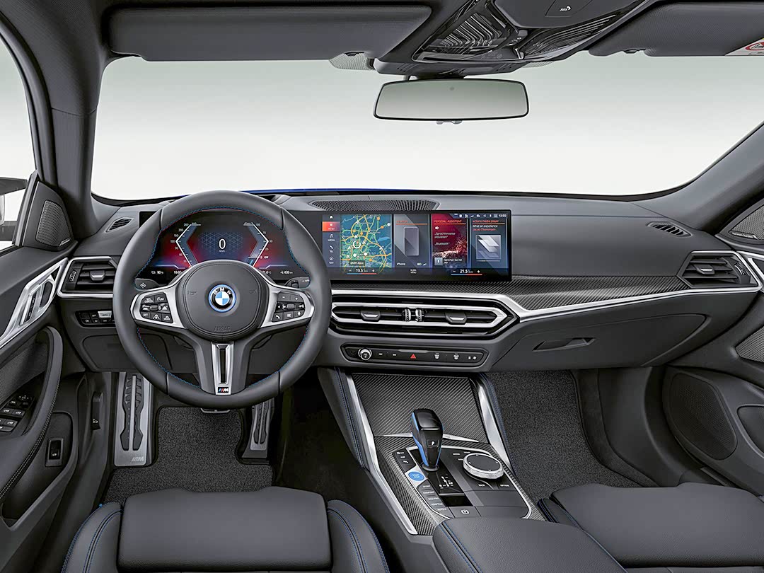 内饰与4系别无二致,仅多出蓝色元素、碳纤维饰板点缀