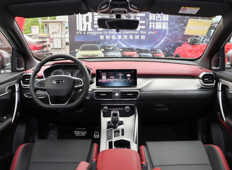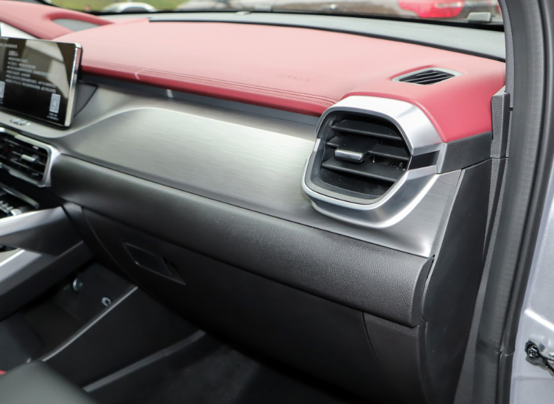 这款车内饰用料讲究,看着高档,中控台上面使用软质材料包裹,中控饰板和挡把区域都采用拉丝工艺,车门衬板与胳膊接触的地方,也都是软质材料。另外中控内饰采用了双色搭配,红色区域看着有激情,银色区域看着有质感。