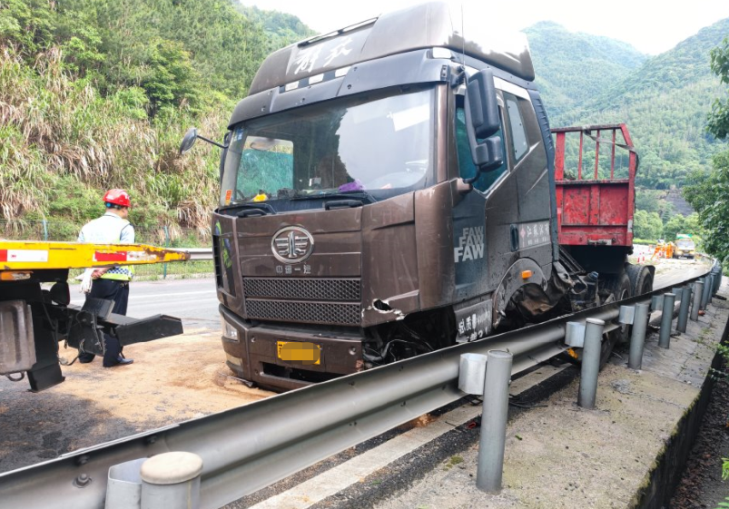 经了解,驾驶员薛某从江苏宜兴拉货准备前往龙泉,虽然在前面龙游服务区进行了休息,但夜里开车实在是困,行驶到事故点时还是扛不住睡意打了个盹。