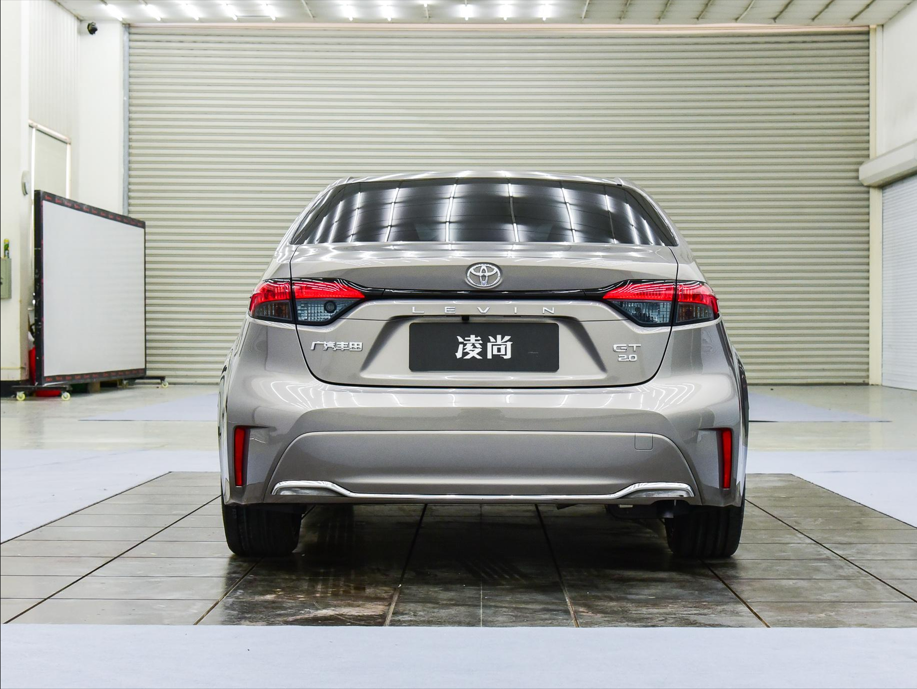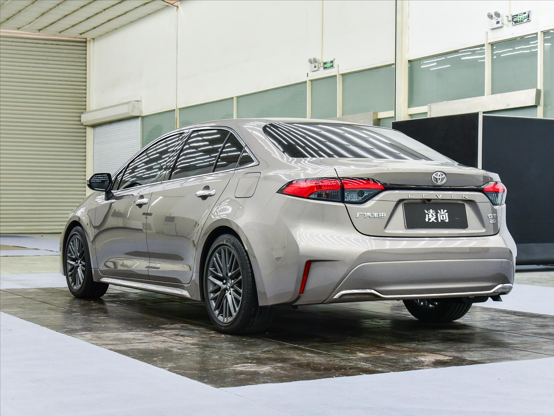 尾部,要区分它与雷凌的方式主要是在下包围的设计上,这台车采用没有使用差异化的银色镀铬来修饰,整体感更加强烈。排气使用隐藏式设计,使用时右侧单出布局。尾灯组使用亮黑金属条连接,伪装成贯穿设计,在效果上还是比较美观的。