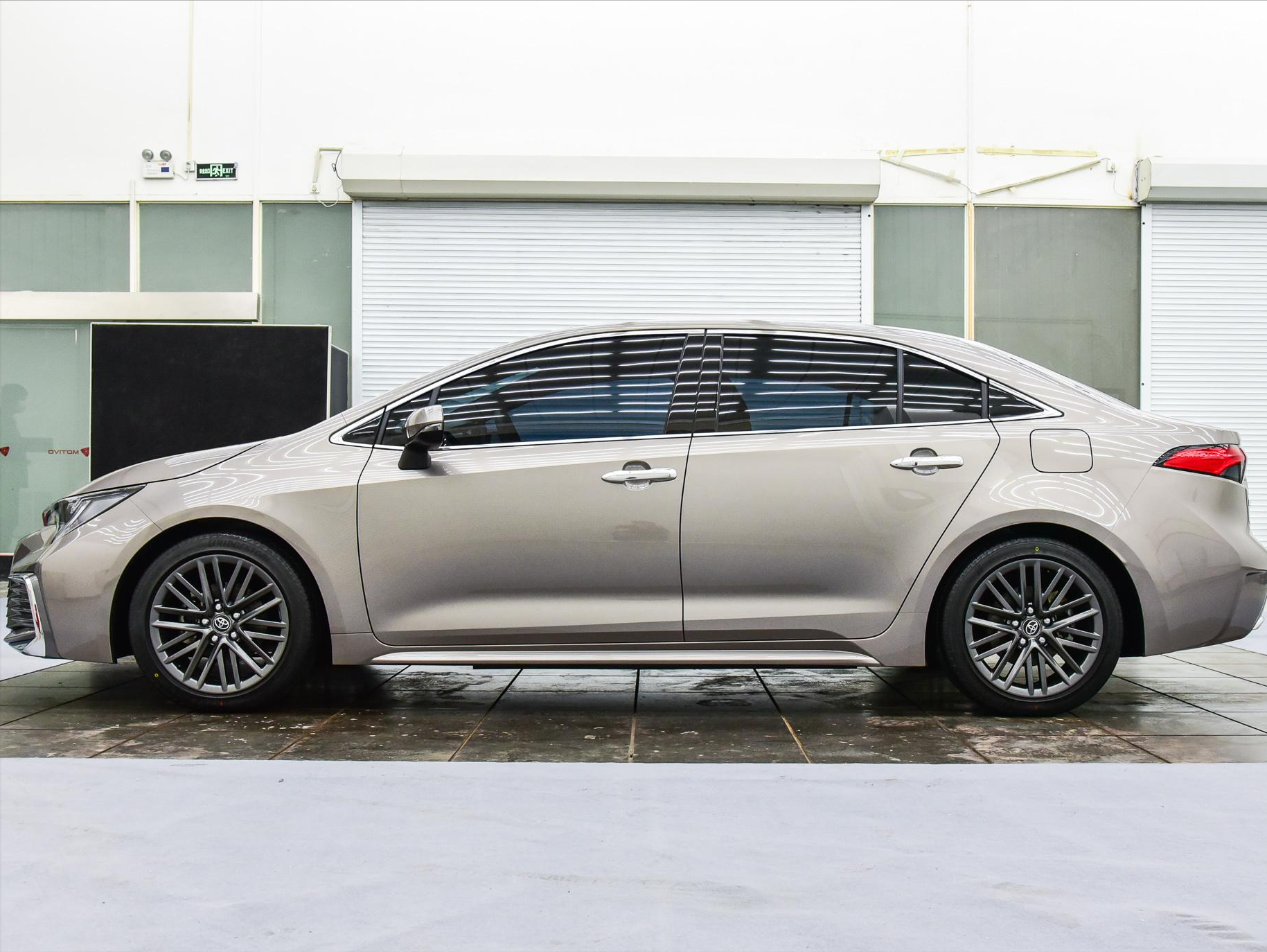 侧面,这台车没有太多的惊喜所在,还是丰田轿车系列经典的设计,由于它的定位要高于雷凌,所以在尺寸上有进一步加长,长度达到4695mm,在轴距上达到2750mm,能够在一定程度上获得更多的空间感。从侧面看,我比较喜欢它的轮毂设计,并加入暗灰效果,很显高端范,尺寸为17英寸,轮胎使用225/45的普利司通轮泰然者系列,主打舒适性和静谧性,目前市场价格单条在700元左右。
