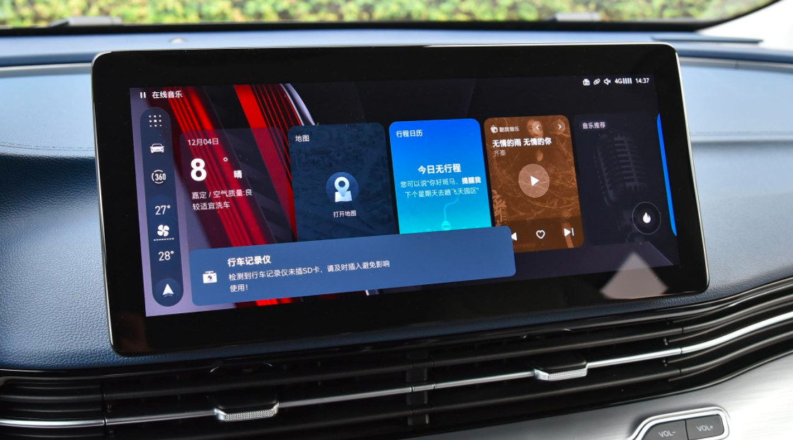 内饰整体布局非常开阔,配备三辐式多功能方向盘、12.3英寸全液晶虚拟仪表盘和12.3英寸高清触控屏,仪表盘可显示AR-Driving实景导航,将导航画面切换成真实路况场景,让导航路线更加精准。