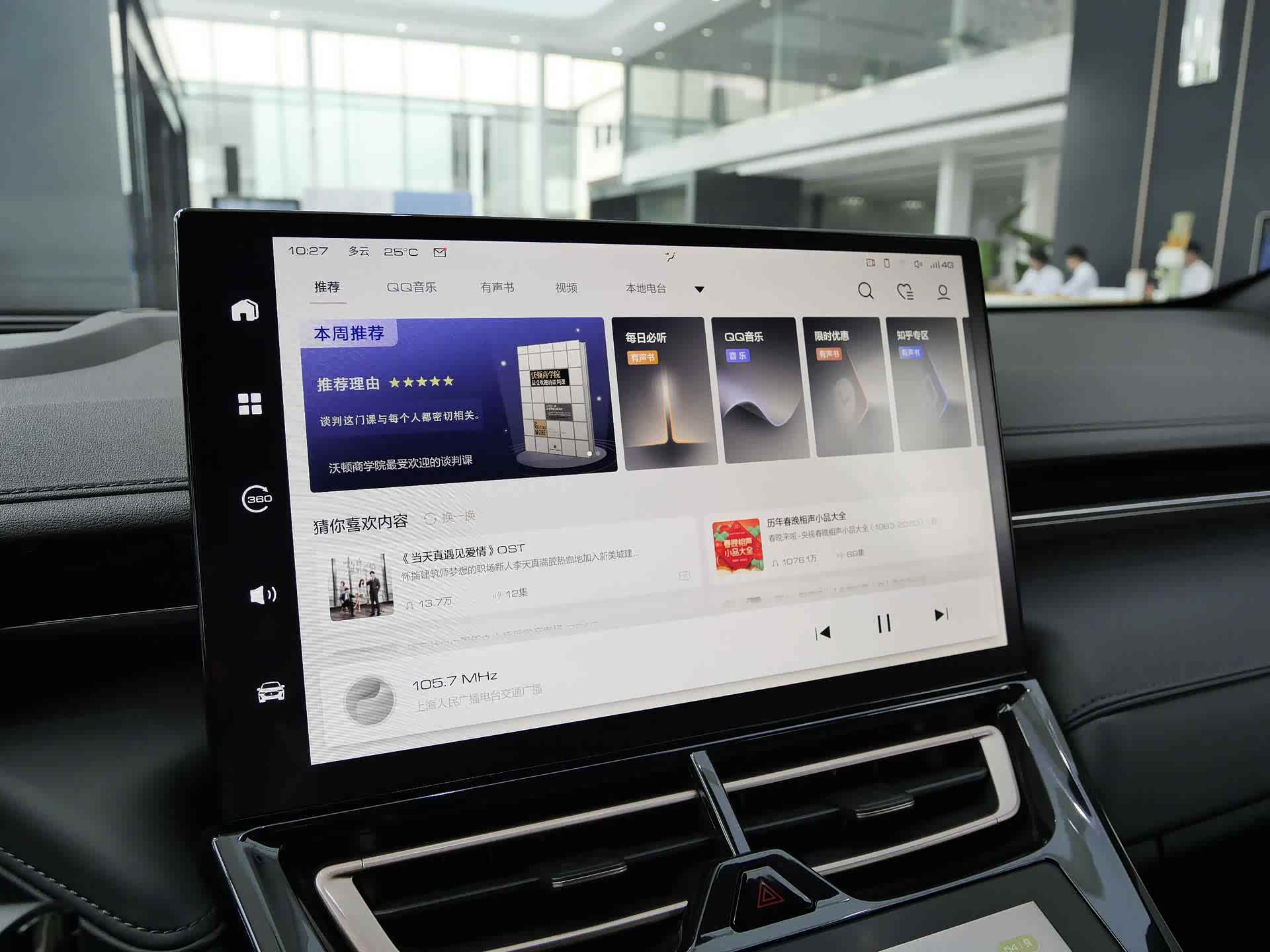 除了全液晶仪表外,WEY摩卡全系还标配了14.6英寸的中控大屏,操作起来很流畅,除了导航、AI语音助理等功能外,还具备知乎、喜马拉雅、爱奇艺等丰富的APP信息娱乐功能,并且支持在线升级、车载WI-FI等功能。