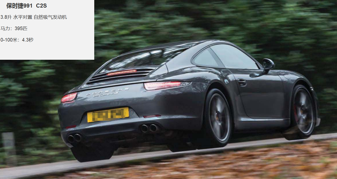 最后,我们来一起欣赏一下末代自吸的保时捷991车型,这台是搭载了3.8升水平对置发动机的991 C2S车型,配合7速PDK变速箱,最大马力达到395匹,0-100米加速时间为4.3秒。