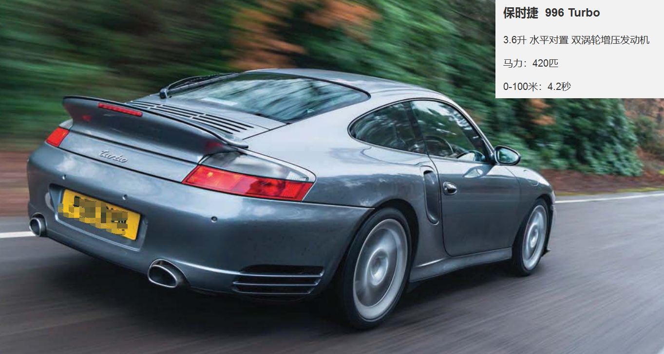 首先,我们先来欣赏这台2000年的保时捷911 Turbo 代号996。这台996搭载一台3.6升水平对置双涡轮增压发动机,配合5速自动变速箱,0-100米加速时间仅为4.2秒,马力420匹。