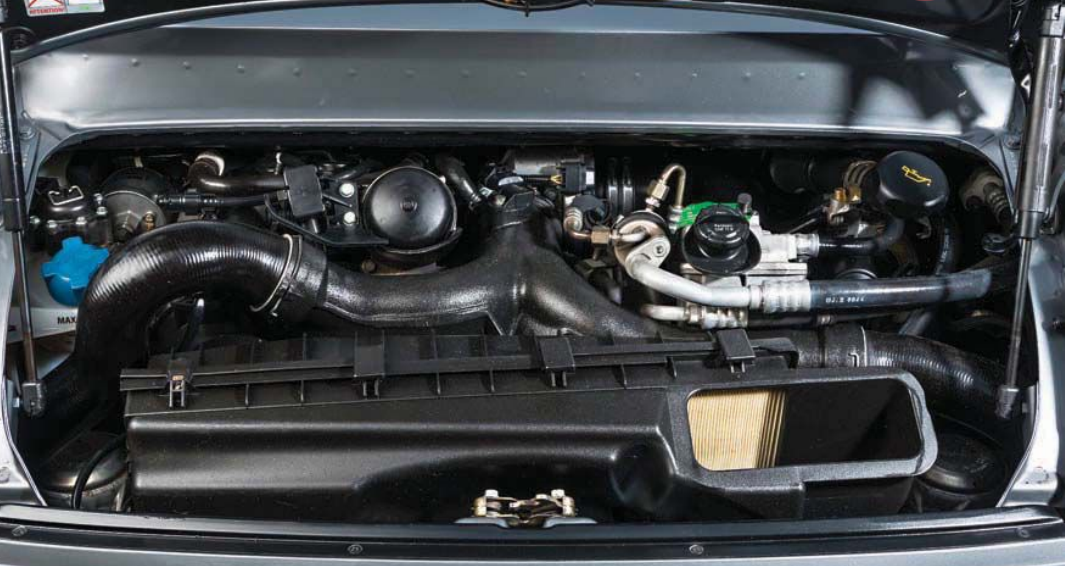 从这代997开始,保时捷终于彻底将后发动机舱严密的包裹起来了,在不拆任何饰板的情况下,基本看不到什么管线。