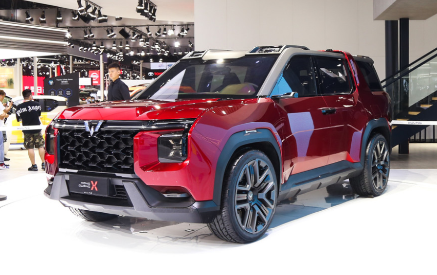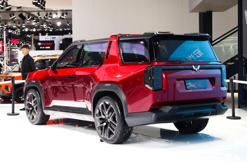 从外观上来看,新车的造型的确相当的前卫、激进,一张大尺寸的进气格栅配合着两侧方正的大灯,在中间还采用了家族银色的车标LOGO,这也就意味着它将会是第二款五菱银标车型,转向车身,新车的设计风格更加偏向于MPV,不过它那四个大尺寸的轮毂,看得出完全就是为了越野而设计的。