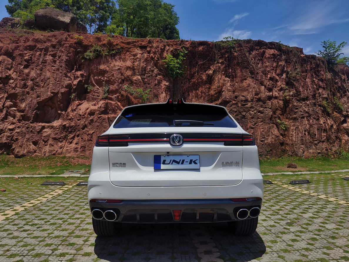 三是车身尾部,贯穿式尾灯和尾部整体造型配合得很融洽,点亮后的效果不错,尾灯内部还带有流水式尾灯,这是我认为UNI-K设计不错的一个地方。