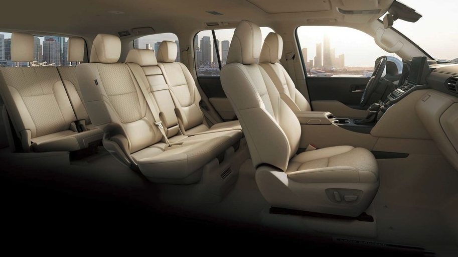 2+3+2的7座座椅布局,其中第2排座椅是固定的样式不能够前后移动。三排座椅可以收纳在地板下面。内饰依然是采用米色色调,看上去非常温馨。