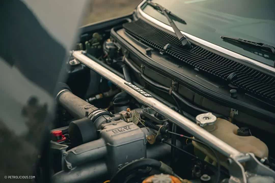 “在车库里见到它,我才知道叔叔有这样一台车。他告诉我因为妻子的离世,让他对这台车丧失了热情。因为这台车在那些年里给他们二位带来了非常多的美好回忆。1986年他找到在BMW工作的朋友买下它,并且直接送到了Hartge改装厂加持了包围、BBS轮圈、拉花等等”。