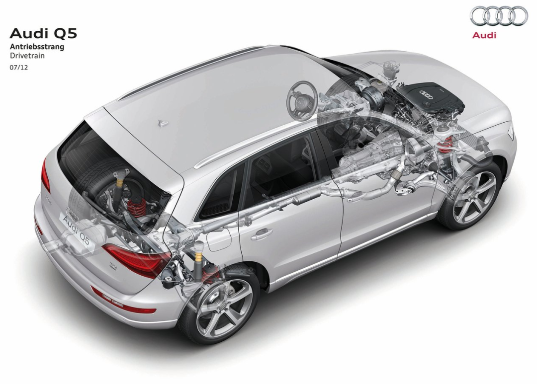 所以这就是键盘车神们的证据:奥迪在走量车型和高阶车型上进行区别对待,说明quattro就是比quattro ultra好——仅从成本上看,这个说法确实有道理,但并不能以偏概全。接下来我以上一代Q5与现款Q5L为例进行对比,前者搭载的是机械式quattro,而后者则是quattro ultra,它们俩有什么区别呢?
