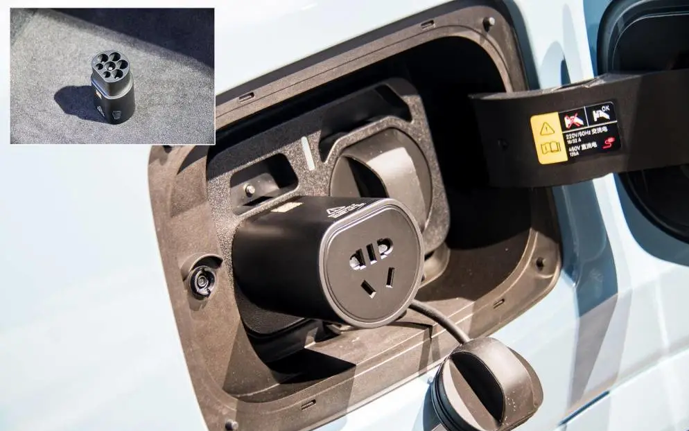 值得一提的是,2021 款理想ONE新增了2.2kW外放电功能,通过外放电转接头就可以使用外部用电设备。