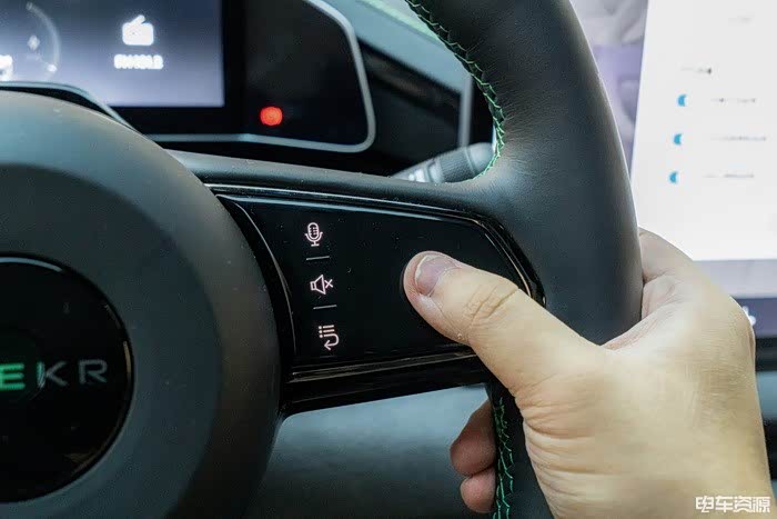 方向盘上的所有按键均为触控式,为避免误触,需要稍微用力一点按下去才会有反应,全部带有震动反馈,没有损失传统物理按键的操作便捷,但科技感增强了不少。