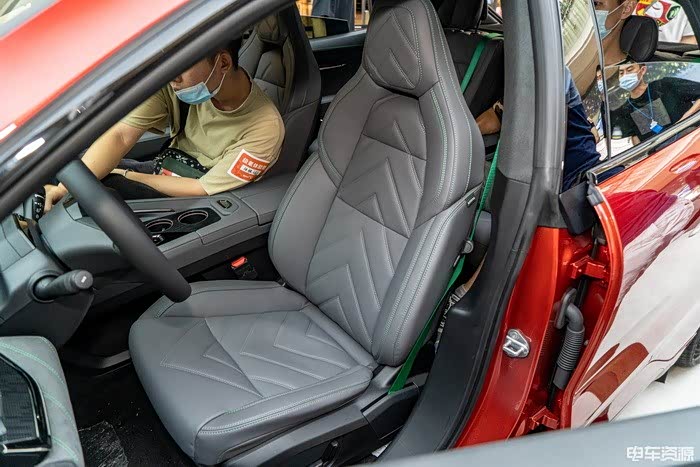 极氪001的座椅本身运动感挺强,椅背和头枕为一体式设计,中间部分的填充物柔软舒适,侧翼也能提供不错的支撑,还标配了前排座椅加热功能。