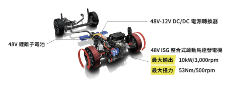 这组轻混技术,为 48V ISG 整合式启动马达发电机,在 Swift Sport 车上,可提供 10kW/3000rpm 最大的输出,以及 53Nm/500rpm 最大扭力,搭配 48V 锂电池。