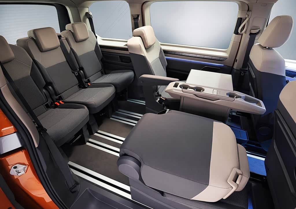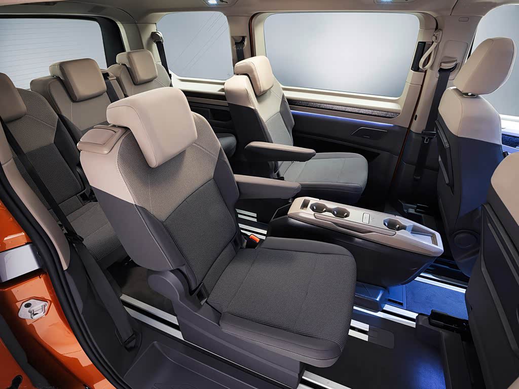 大尺寸带来的还有更大、更灵活的内部空间,该车配备了全新的模块化轻型座椅和创新桌板,后两排的座椅相比老款减重25%,并且可以根据需要进行移动和拆卸,采用7座布局,中间有一条超长滑动轨道,第二排两个座位可以180前后转动变成会议风格,第三排的长座椅被替换成了三个独立座椅,并且中间座椅可以在第二排和第三排之间滑动,行成2+2+3或2+3+2的两种7座布局。