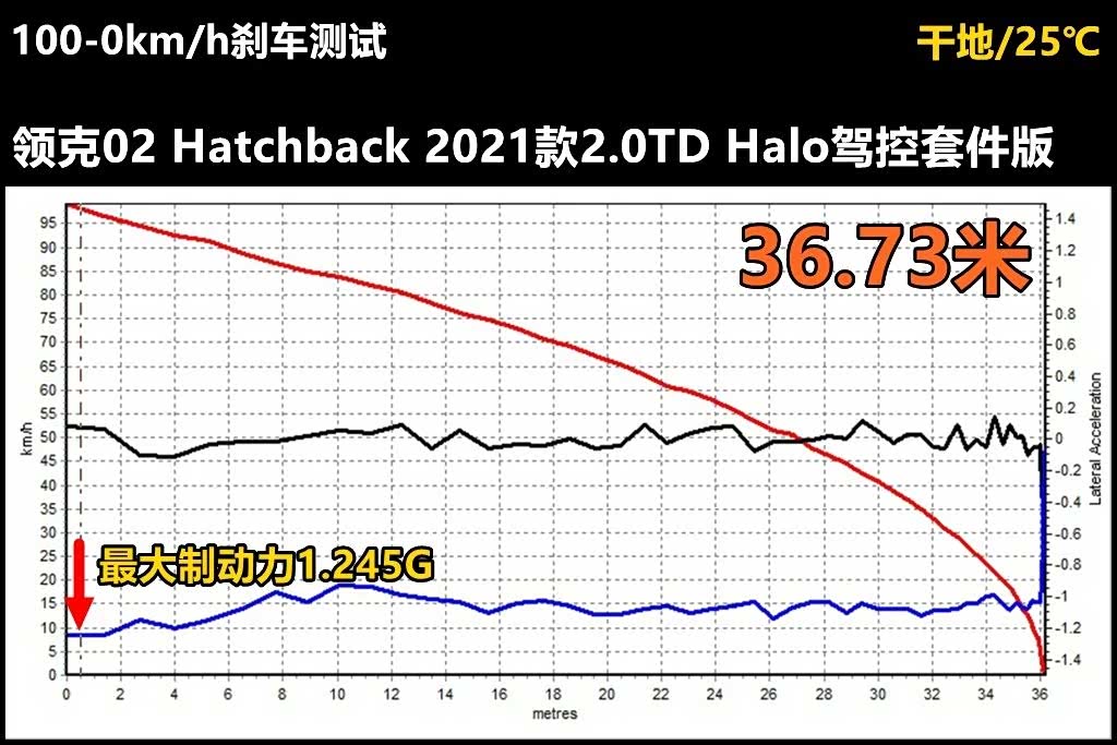 这款两厢版领克02的整备质量达到了1590kg,这个体重对于一款紧凑两厢轿车来说算是比较大的。其动力总成是187kW/350Nm的2.0T直列四缸涡轮增压缸内直喷引擎以及8速自动变速箱。测试当天气温是25℃。