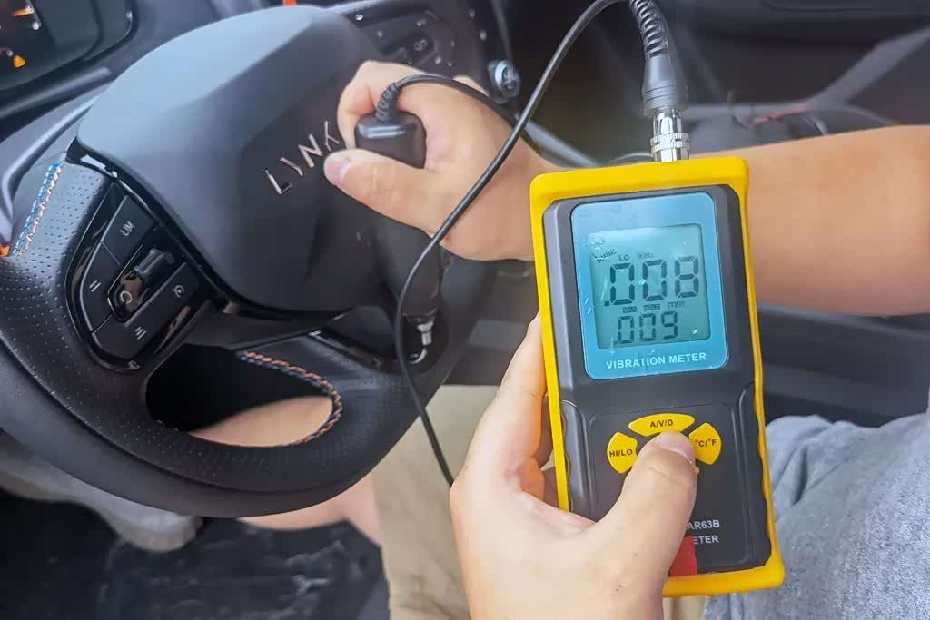 而方向盘热车怠速下的最大振幅,则是达到了0.009mm。按照我们的标准,这个数据≤0.005mm属于完美,≤0.010mm则是优秀。