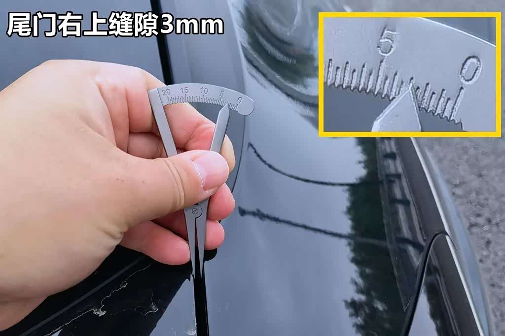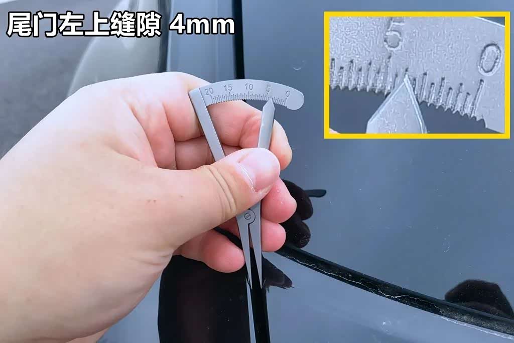我们在两厢版领克02上选取的钣金缝隙测量点共有4对8组,分别是引擎盖靠近A柱下端左右缝隙、引擎盖前端靠近大灯的左右缝隙,尾门上端靠近挡风玻璃的左右缝隙,以及尾门下端的左右缝隙。基本上这一组数据就能反映出这款车的整体钣金工艺。