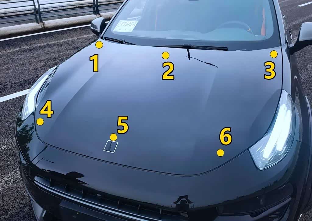 由于引擎盖是全车最大的一个钣金面,所以我们特地选择引擎盖上的6个点进行车漆厚度测量。基本上这一组数据就能反映两厢版领克02的车漆整体工艺水准。