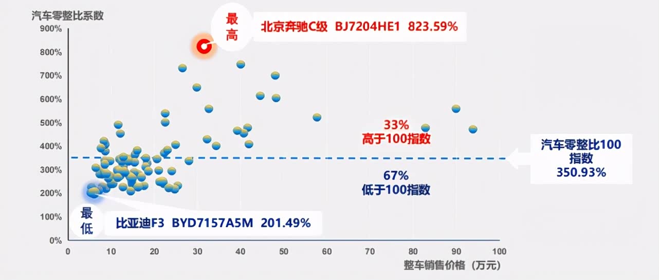 事实上从车价就能看到,现阶段的新车比多年前的新车便宜不少,更低的入门价也就大幅度降低了大家的入手成本,那厂商盈利、4S店盈利板块都会逐渐向配件方面转移。这一点,从中保研公布的配件负担指数就能看到。