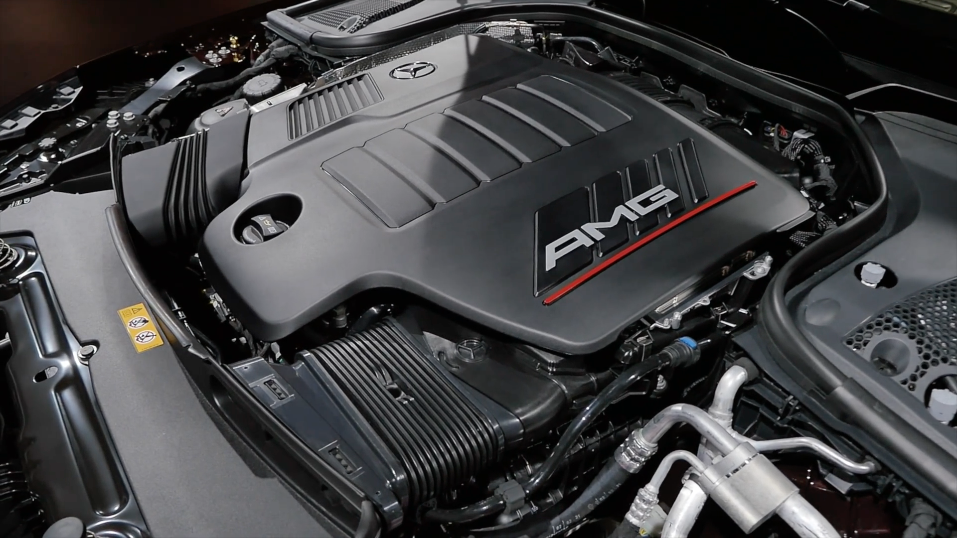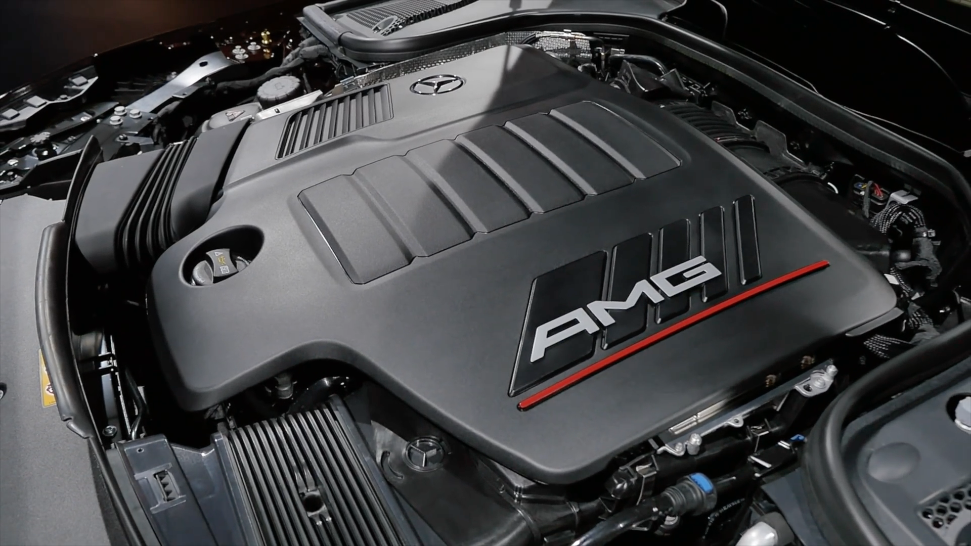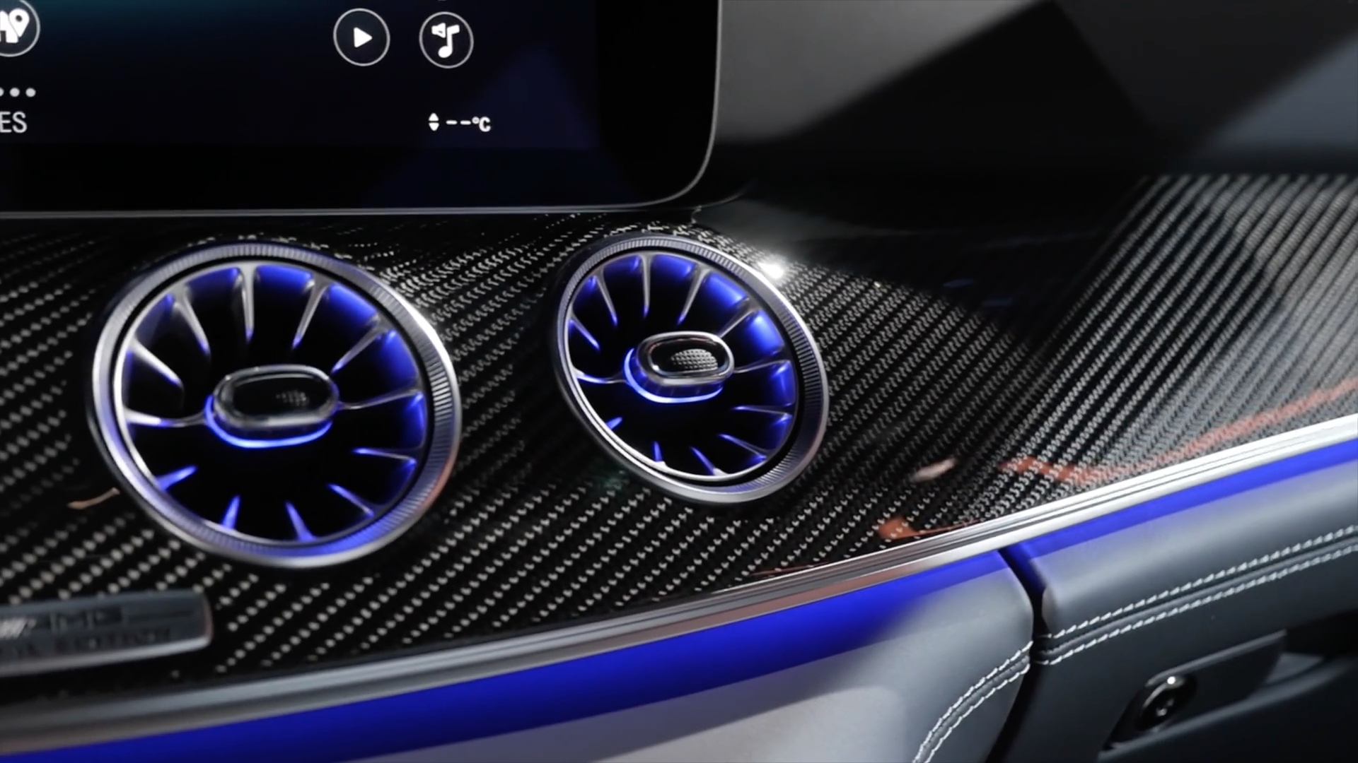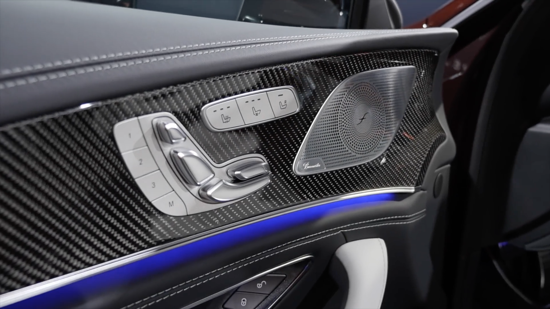 内饰采用最新家族设计豪华运动风格,环抱式中控台配备双12.3英寸液晶显示屏,功能丰富的MBUX多媒体系统,涵盖全部车辆功能信息,中控采用天然纹理灰色白蜡木饰板点缀,配备全新双辐式AMG平底方向盘,采用纳帕真皮包覆,嵌有亮面触控式操控按键,并有震动反馈,方向盘还集成了传感器,可感知驾驶者是否双手在握,提升安全性,圆形的AMG Drive Unit旋钮更加精致漂亮,方向盘后方的换挡拨片能提供更多驾驶乐趣。