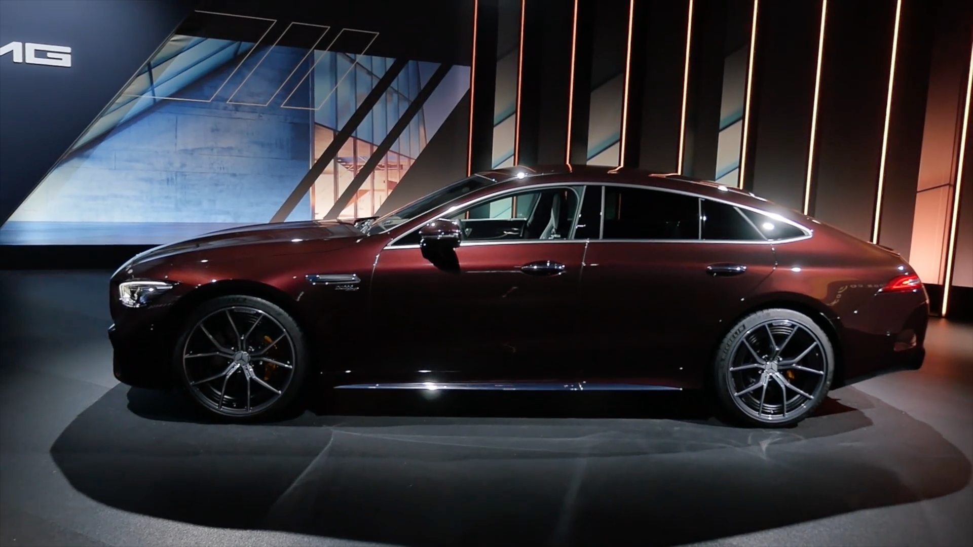 车身线条流畅、优雅,四门溜背式造型修长,腰线由车头贯穿到车尾,符合其西装暴徒的气质,四门车型空间更具日常实用性,21寸双十幅高光锻造轮毂,配合AMG专属刹车卡钳,制动性能强悍。