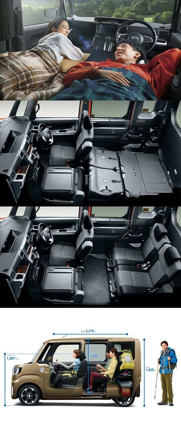 K-CAR长宽高分别不超过3400mm、1480mm、2000mm,都为四座,四个座椅均可灵活放倒,它的载重量不能超过350千克,排量不能超过0.66升。尺寸小,空间却不小,就拿本田N-BOX SLASH来说,得益于出色的空间优化,这台车的车厢内部长度和高度甚至比本田锋范还大。