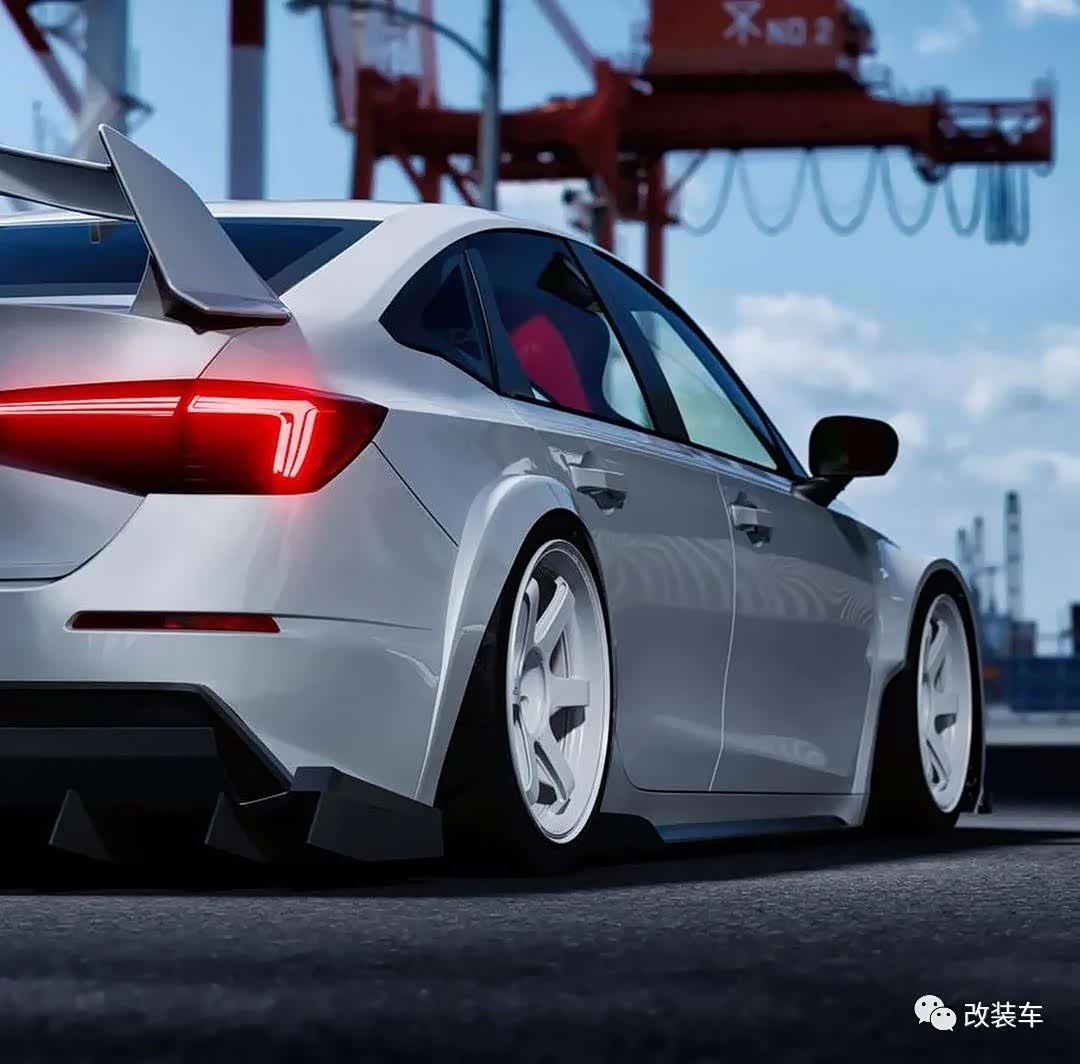 改装11代思域这份蛋糕,谁也不想错过,大神们早就开始他们的创作。比如下面这个flathat3d大神的作品,加装了宽体降低了底盘,甚至车身尺寸都有拉长之嫌。