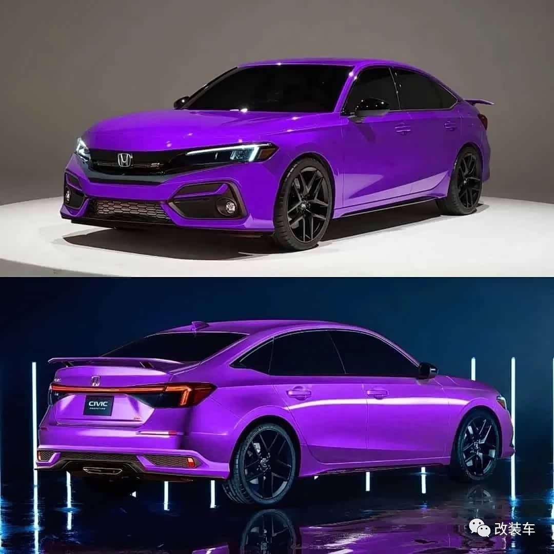 融合了10代思域前保险杠,以及10代三厢版那个HDMI排气口的魔改版本,新旧混合的效果也是非常独特,再换一身骚紫漆面,绝了。