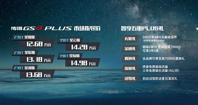 传祺GS4 PLUS基于广汽GPMA全球化平台模块化架构,采用了钜浪动力平台、ADiGO智驾互联生态系统等先进技术,与超感交互智能座舱。传祺GS4 PLUS不仅提供1.5T版本还是推出了2.0T版本车型。