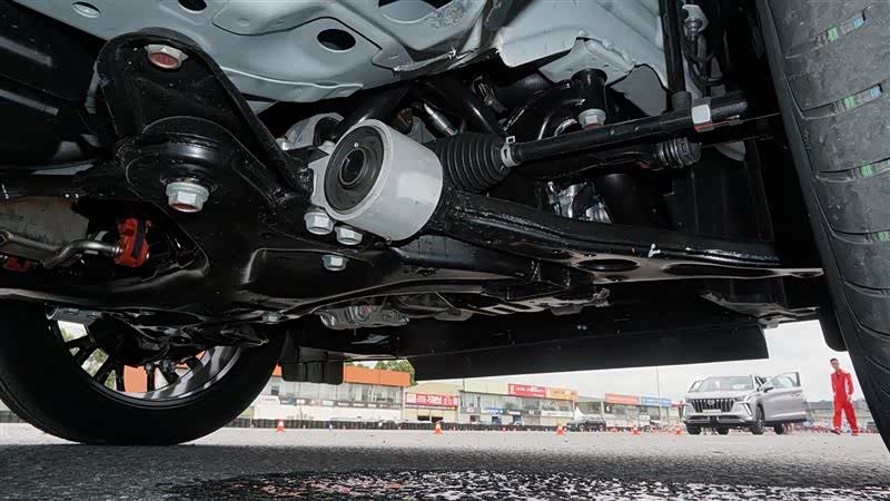 新车的底盘对衬套、减震器等进行了一些优化,比如采用的流固一体液压衬套,提升了冲击柔和感。副车架三向异性刚度分体式衬套,有效优化垂向振动传递路径,提升振动的隔离。高位后纵臂+高效率减振器,有效优化纵向传递路径,提升冲击舒适性感。
