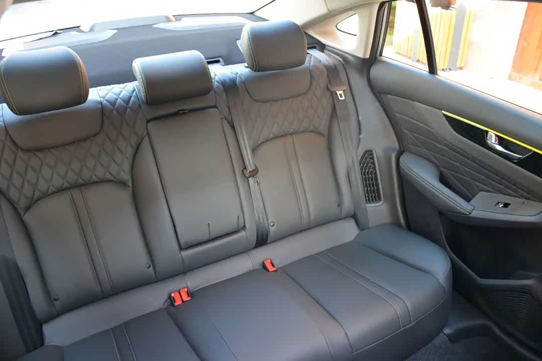 最后再来看看后排乘坐空间,充足的腿部和头部空间让奕炫MAX混动版的乘坐感受非常舒适,随车身高185cm的朋友也能在后排轻松翘起二郎腿。至于座椅填充,也是极为柔软,在一天之内经历全程近400km的长途奔袭后,驾乘者均未有太多劳累感,足见这套座椅的舒适度。