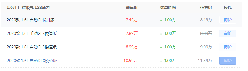 汽车提供的是1.6L自然吸气发动机,匹配的是6挡手动、6挡手自一体变速箱,最大输出功率为123马力,峰值扭矩为150.7N.m,最低百公里油耗仅5.6L,油耗处理的很理想。