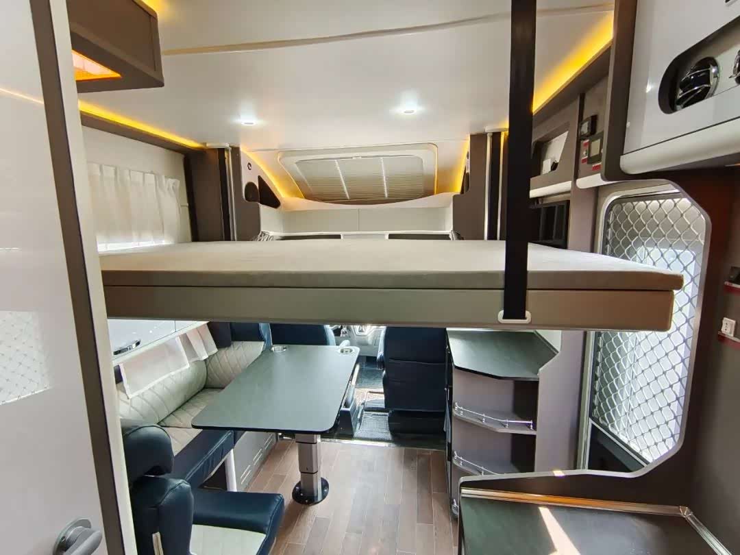 在会客区的上方,还配有电动吊床,又一片休息区域轻松拓展出来了,可谓充分利用了车内的每一寸空间。