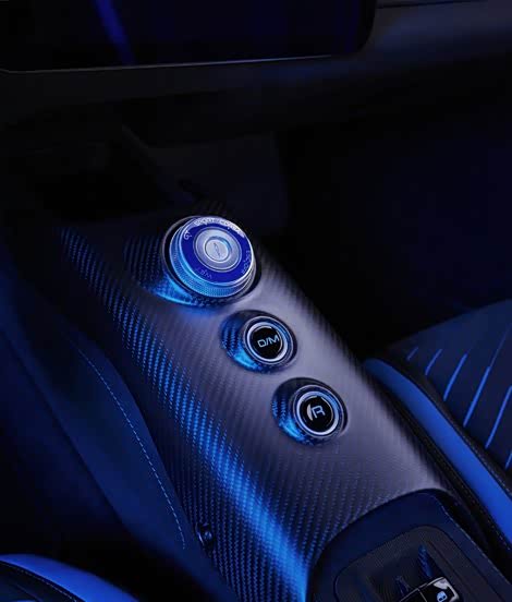 内饰设计在优雅的基础上也体现了运动的风格,整个内饰采用哑光碳材料制成。两个10.25英寸的屏幕分别位于驾驶座和中央仪表板上传递各种信息,只有驾驶模式选择器、两个挡位按钮、车窗控制器、信息娱乐音量控制和智能手机无线充电板被放置在中央通道中,并且完全消除不必要的装饰,使其尽可能简单。