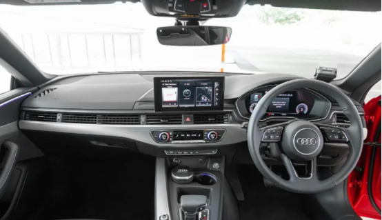 进入车内,12.3英寸的液晶仪表盘,10.1英寸的中控大屏偏向驾驶座,三幅式的多功能方向盘,奥迪运动风格的电子档把,简洁而不失豪华以黑色为主题的设计,感受到十足的战斗气息。