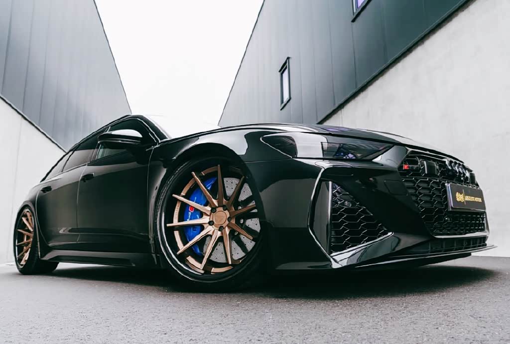 奥迪 RS6 Avant实车,外形是激进的造型设计,黑色的车漆涂装气场很足。前脸多边形的蜂窝中网设计彰显了强大的运动气势,两侧的导流口造型也是非常动感,引擎盖上凸起的筋线十分明显,并且富有很强的肌肉力量。矩阵式的头灯设计非常凌厉,内部结构勾画得十分仔细,点亮后的视觉效果也是非常出色。前脸整体处理运动又很大气。